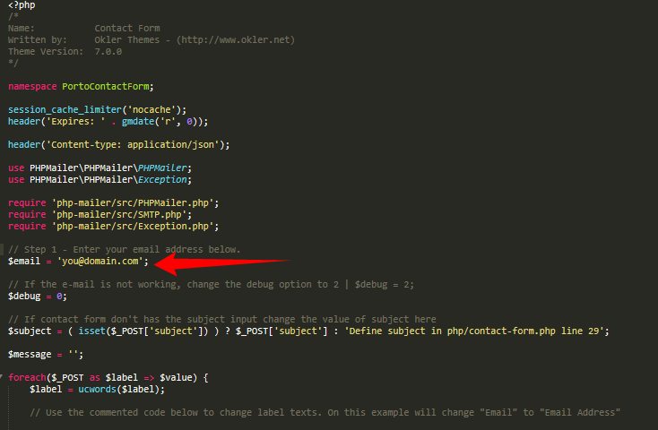 4) In php/contact-form.php change the value of variable $email to your email (the email that will receive contacts)