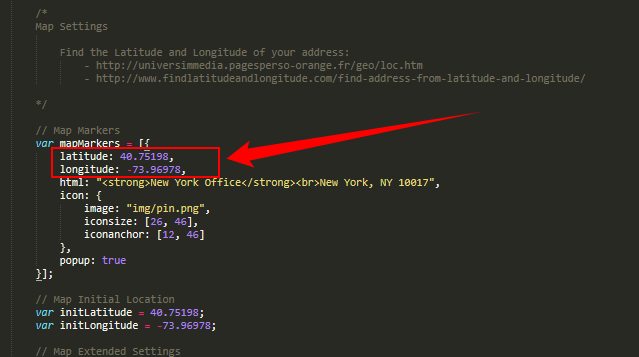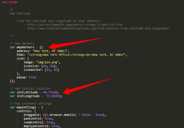 3) Configure the map location. For example, using as base the file contact-us.html: